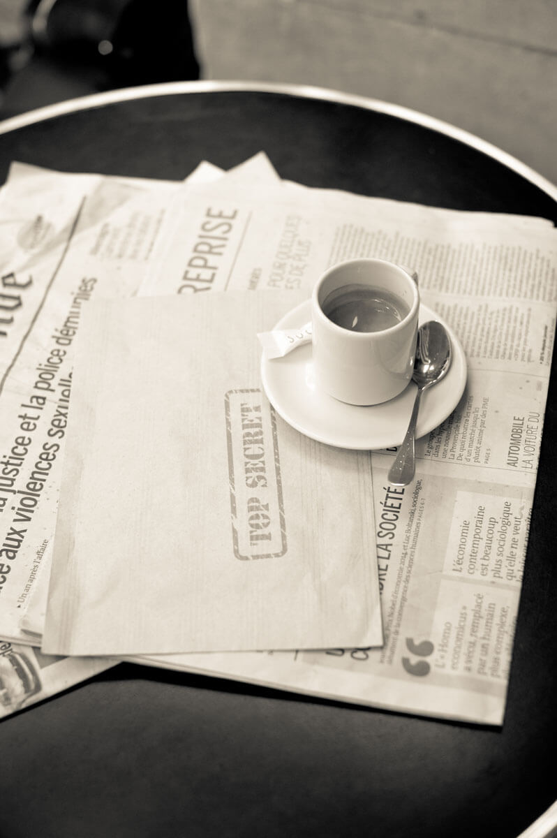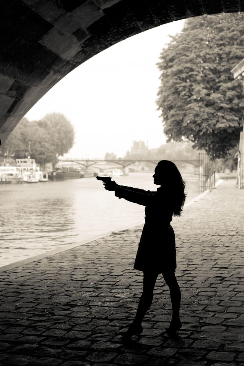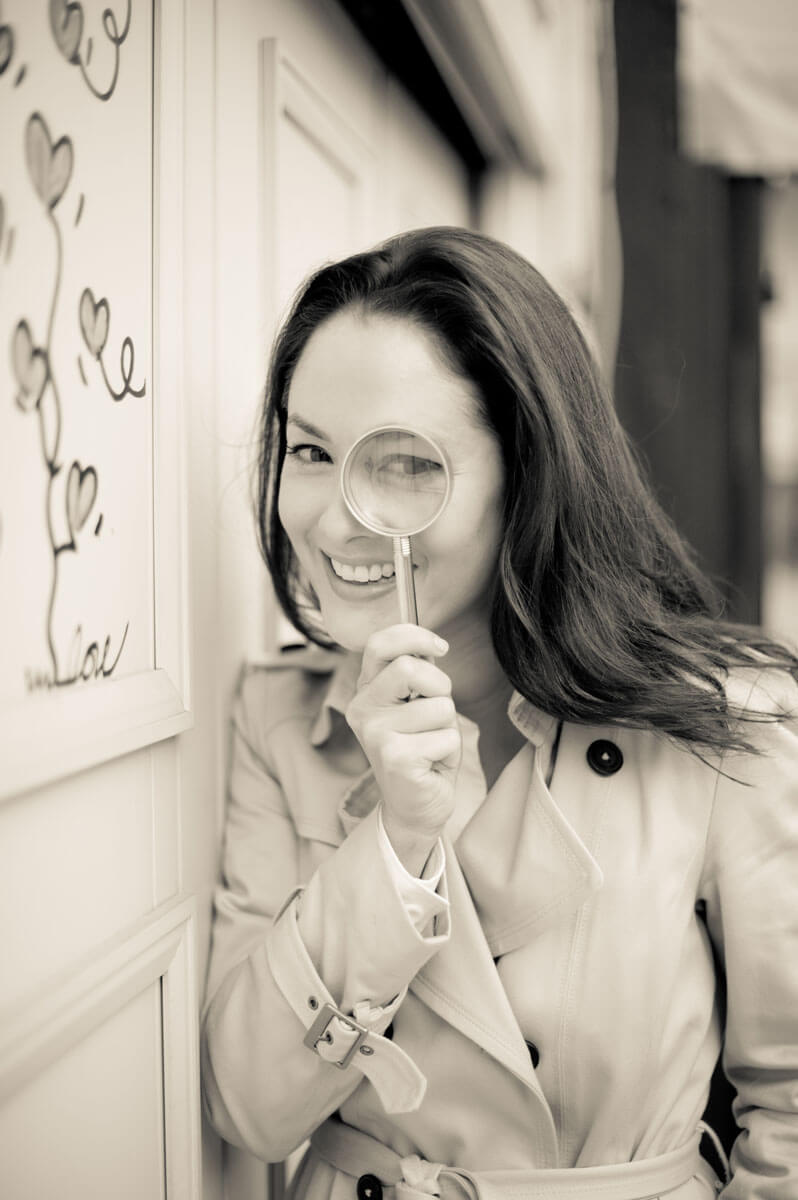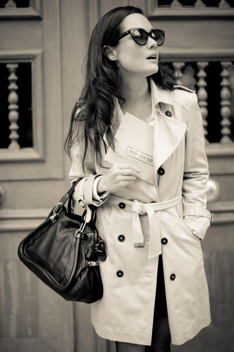 Film Noir crime dramas inspired this retro detective photo shoot. The story begins at Duluc Détective, the oldest private detective agency in Paris, and takes us on an adventure through the 1st arrondissement to solve a Parisian mystery. The last photograph, my signature red umbrella photo that started a trend, was featured on the cover of Le Style magazine.