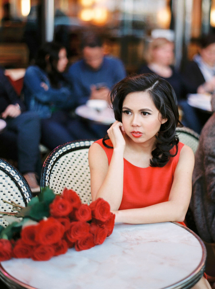 With every detail exquisitely planned, the couple and I worked together to create their dream wedding day photographs. The bride did all of the calligraphy, including the Madame et Monsieur mugs used for their cafes photos. I connected the couple with a Parisian driver who drove us all over Paris in his gorgeous vintage Citroen Traction Avant. Their custom photo shoot itinerary included the Louvre, Port des Arts, La Seine, Eiffel Tower, and a spontaneous break for crepes.