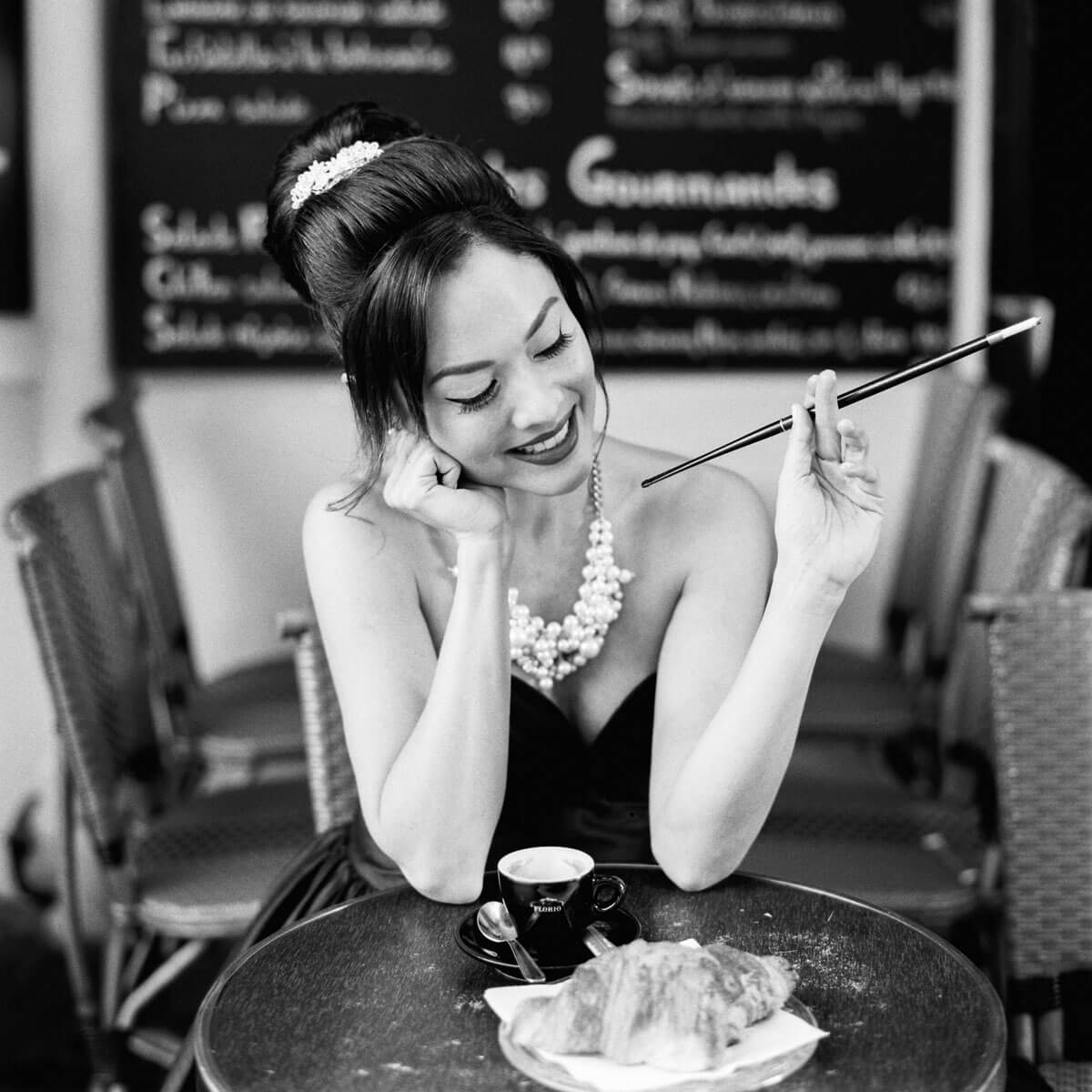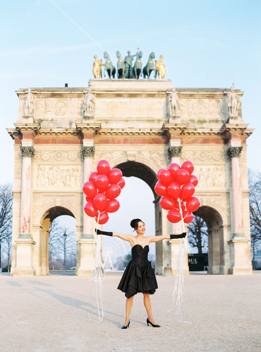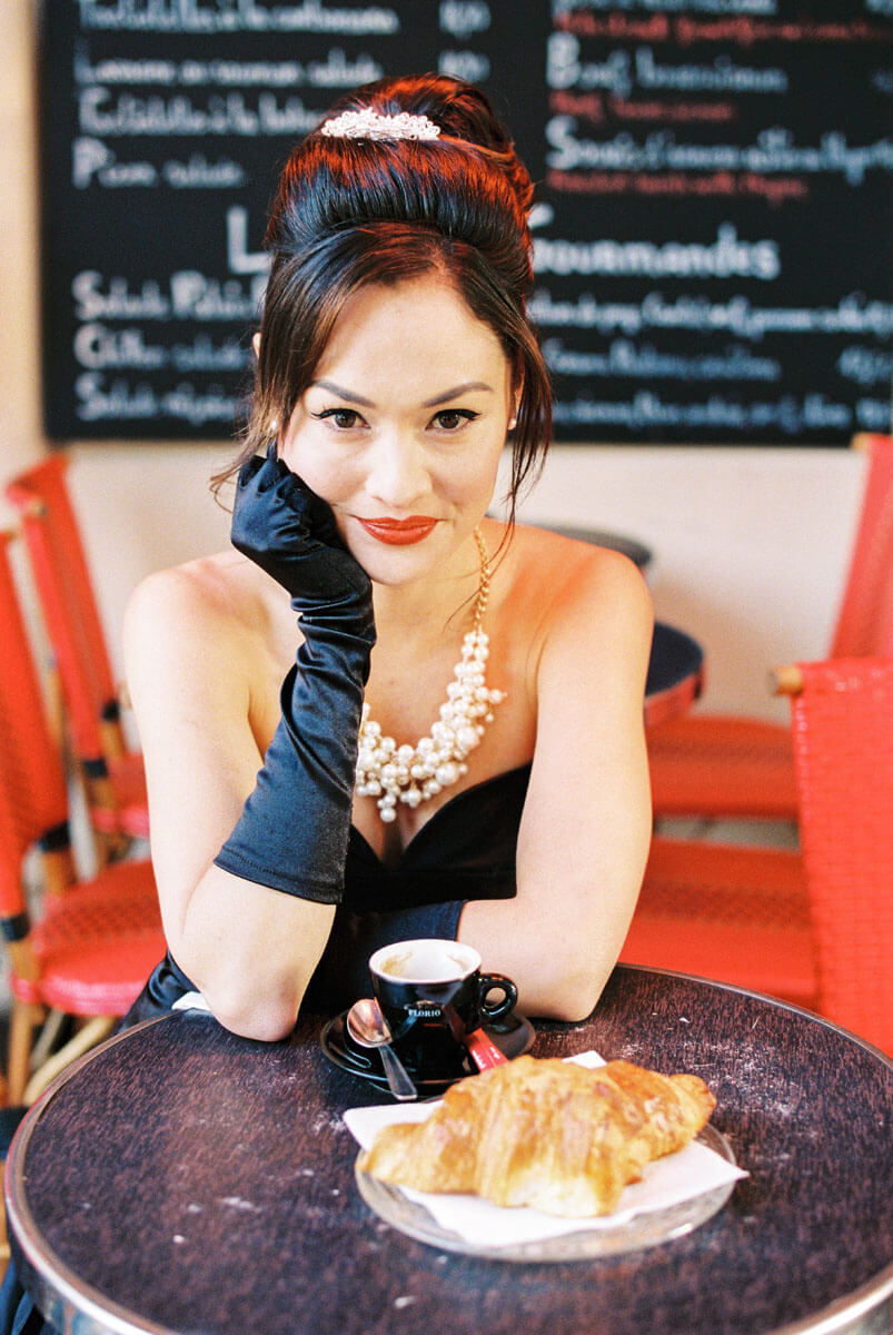 Inspired by Audrey Hepburn and Amelie. We recreated some favorite moments from Breakfast at Tiffany’s, Funny Face and Le Fabuleux Destin d’Amélie Poulain at locations all over Paris.