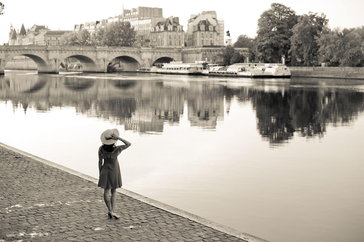 With every detail exquisitely planned, the couple and I worked together to create their dream wedding day photographs. The bride did all of the calligraphy, including the Madame et Monsieur mugs used for their cafes photos. I connected the couple with a Parisian driver who drove us all over Paris in his gorgeous vintage Citroen Traction Avant. Their custom photo shoot itinerary included the Louvre, Port des Arts, La Seine, Eiffel Tower, and a spontaneous break for crepes.