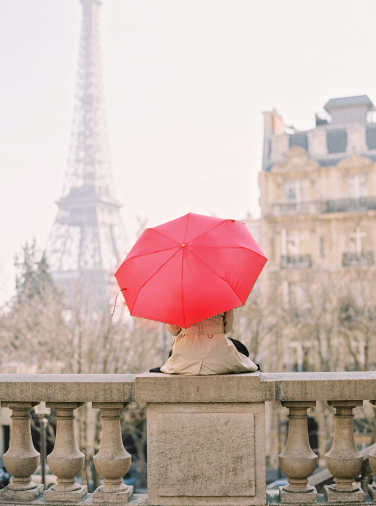 Film Noir crime dramas inspired this retro detective photo shoot. The story begins at Duluc Détective, the oldest private detective agency in Paris, and takes us on an adventure through the 1st arrondissement to solve a Parisian mystery. The last photograph, my signature red umbrella photo that started a trend, was featured on the cover of Le Style magazine.