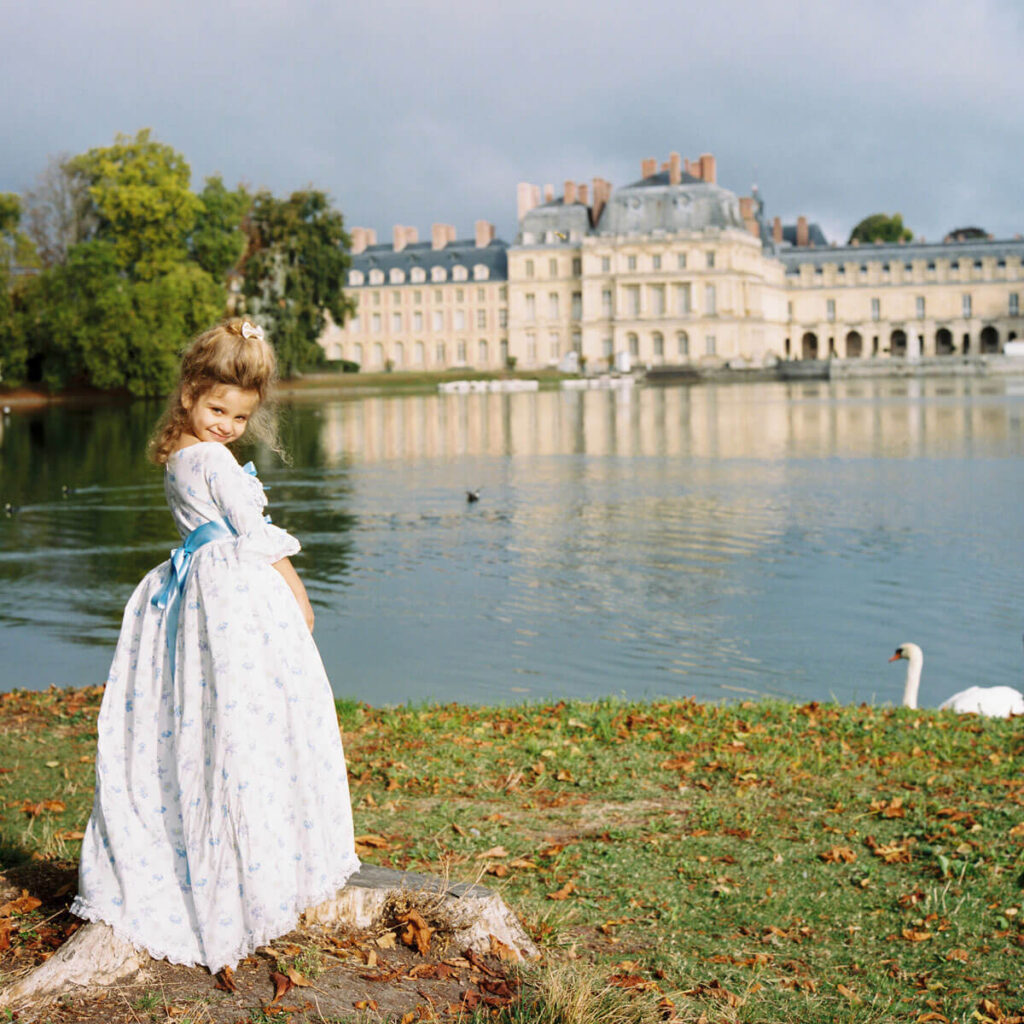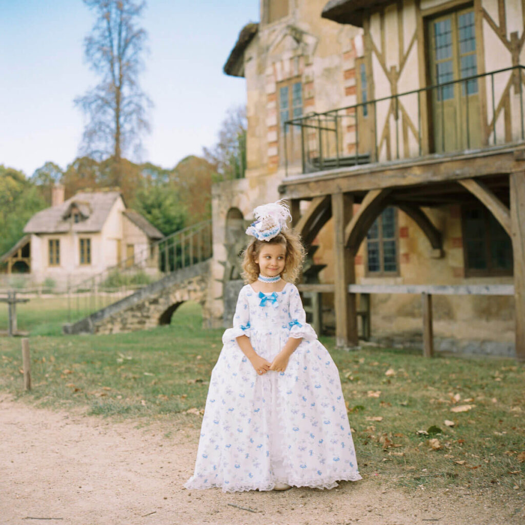 Shot on film at Palace de Versailles, the Petit Trianon, the Queen’s Hamlet, Chateau de Fontainebleau, and Ladurée.